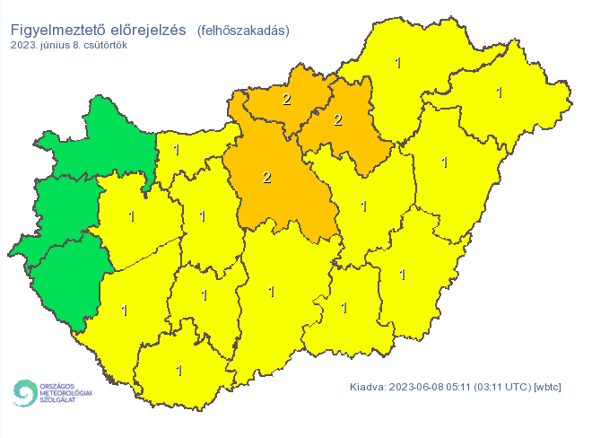 3 vármegyére másod-, 13-ra elsőfokú riasztást adtak ki!