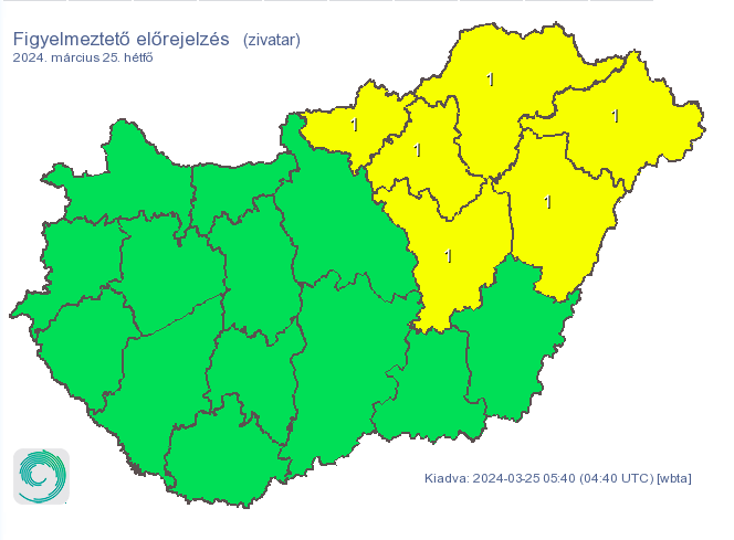 Ugyanakkor riasztást is kiadtak hat kelet-magyarorzsági vármegyére. "Hétfő délután az ország északkeleti harmadán a záporok mellett néhol zivatarok is kialakulhatnak. Az intenzívebb gócokat átmeneti viharos (~60-70 km/h) széllökés, valamint jégdara is kísérheti" - olvasható a veszélyjelzésükben.