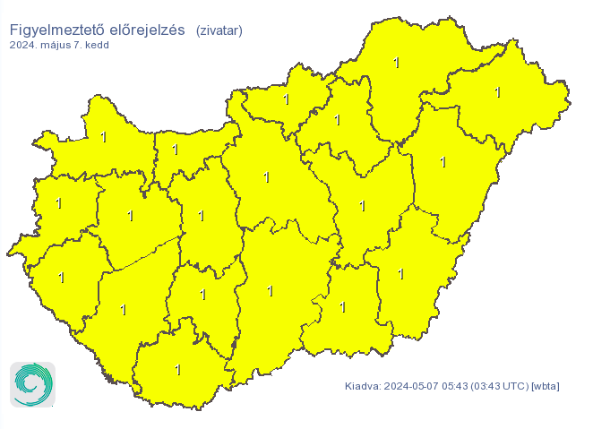 A HungaroMet friss riasztása minden vármegyére érvényben van. Zivatarokra, jégre, szélerősödésra is számíthatunk.