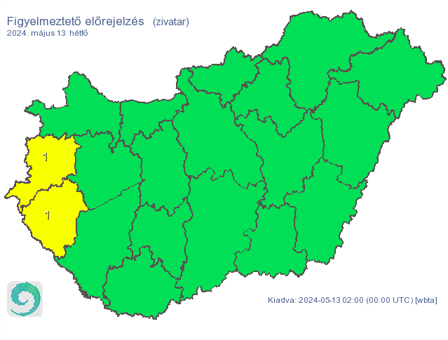 "Ma a déli óráktól az Alpokaljára, illetve a nyugati-délnyugati határvidékre nyugat felől besodródhat egy-egy zivatar, amelyeket szélerősödés és esetleg aprószemű jég kísérhet" - írja honlapján a Magyar Meteiorológiai Szolgáltató Nonprofit Zrt.