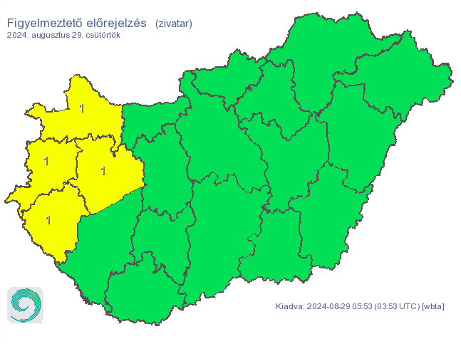 "Ma délután nyugaton néhol és északkeleten zivatar is kialakulhat viharos (60-75 km/h) szél kíséretében" - írja a HungaroMet csütörtök hajnalban.