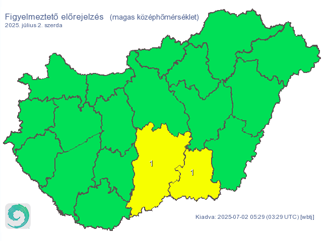 A felmelegesdésnek köszönhetően szerdára máris riasztást adtak ki két vármegyére is. "Ma elsősorban a Dél-Alföldön, valamint kisebb körzetekben másutt is elérheti, meghaladhatja a 25 fokot a napi középhőmérséklet" - írják magyarázatként.