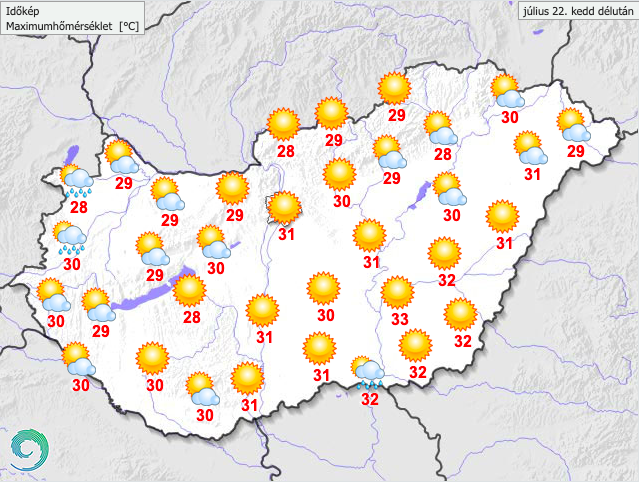 "A sokfelé élénk északnyugati, nyugati szelet olykor erős lökések kísérhetik. A csúcsérték 28 és 33 fok között várható. Késő estére 19, 26 fok közé csökken a hőmérséklet" - olvasható a Met.hu-n.