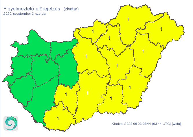 "Délutántól késő estig egyre inkább a keleti országrészben alakulhatnak ki kevés helyen zivatarok, amelyeket lokálisan intenzív csapadék (> 20 mm), átmeneti viharos széllökés (~60-75 km/h), és jellemzően apró szemű (< 1-2 cm) jég kísérhet, de egy-egy erősebb cellában 2 cm-t meghaladó jégméret sem kizárt" - írják a friss veszélyjelzésükben.