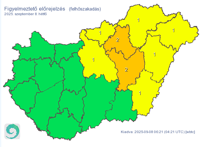"Ma a kora reggeli óráktól a déli órákig az Északi-középhegység térségében és az Észak-Alföldön fordulhatnak elő zivatarok intenzív csapadék (15-25 mm), lokálisan felhőszakadás (>25-30 mm), viharos széllökés (60-70 km/h) és apró szemű jég (< 1-2 cm) kíséretében" - kezdi veszélyjelzését a meteorológiai szolgálat.