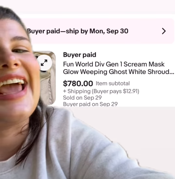 Brittany úgy döntött, hogy ahelyett, hogy a lánya viselné a maszkot Halloweenkor, inkább eladja. Ezért feltöltötte az eBay-re 99 centes (334 forintos) kezdőáron. Ezután a dolgok igencsak felpörögtek. Nagyon rövid időn belül az értékesítési platformon az érdeklődők egymást licitálták felül, az egyik licit meghaladta a másikat. Miután levonták az összes költséget, Brittany végül 780 dollárért (körülbelül 260 ezer forintért) adta el a maszkot.
