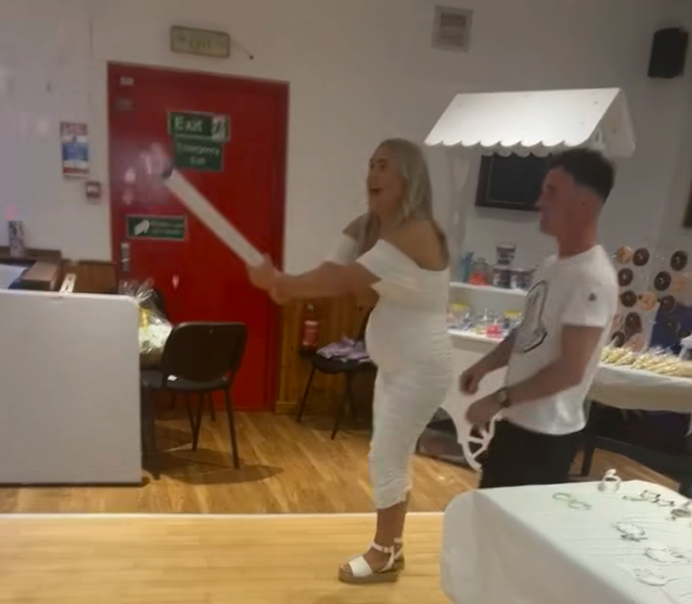 Még egy babaváró bulit is szervezett, ahol lelkesen éljenzett a rózsaszín konfetti láttán, és kiderült, kislánya lesz.