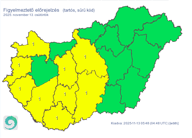 Estére a látási viszonyok romlására lehet ismételten számítani. Ezekre a vármegyére adtak ki riasztást: