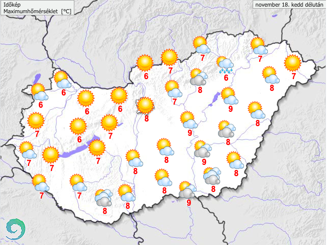 A HungaroMet előrejelzése szerint kedden az összefüggő frontfelhőzet és a csapadékzóna délelőtt délkelet, kelet felé levonul, ezt követően jobbára gyengén felhős, napos, száraz idő várható.