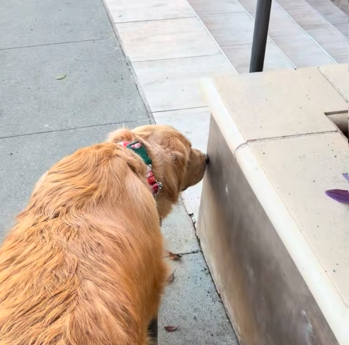 A golden retriever gazdája ugyanis arra lett figyelmes, hogy kedvence nap mint nap ugyanazon a sarkon áll meg, és hosszú másodpercekig mozdulatlanul figyel valamit. A kutya nem húz tovább, nem csóválja a farkát, csak óvatosan leselkedik, mintha egy fontos eseményre várna.