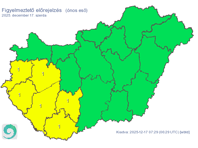 "Délelőttől helyenként kisebb mennyiségű ónos eső előfordulhat, nagyobb eséllyel a Dél-Dunántúlon. A ködös részeken ónos szitálás is lehet. Néhol előfordul sűrű köd" - írja a meteorológiai szolgálat.