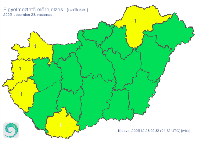 "Vasárnap északkeleten (elsősorban Bodrogköz tágabb térségében), illetve a Dunántúlon, kiemelten a nyugati, északnyugati területeken az északias szelet időnként viharos (>70 km/h) széllökések kísérhetik" - írja a Met.hu.