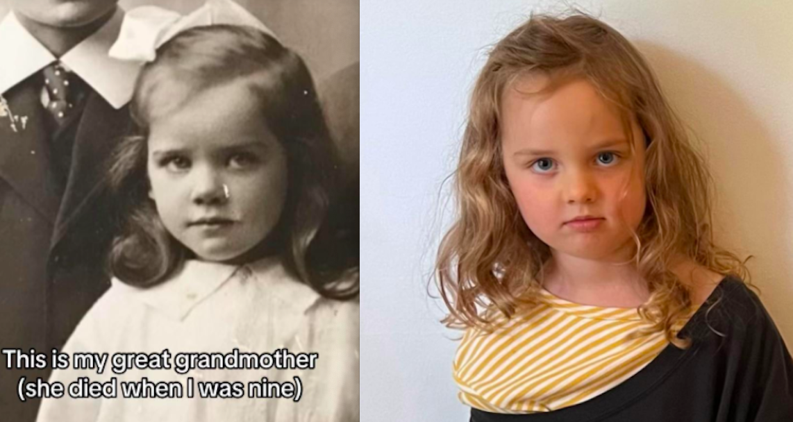 A diavetítés Hilary Sumpton egy régi gyermekkori fotójával kezdődik, akit nagymamakorában egyszerűen "Memar"-ként ismertek. Ezt követi Nyah egy friss képe, aki annyira feltűnően hasonlít dédnagymamájára, hogy mély benyomást tett sok TikTok-felhasználóra. Nem csoda, hogy a bejegyzés már több millió kattintást ért el a megjelenése óta. Azóta több százezer lájkot is gyűjtött.