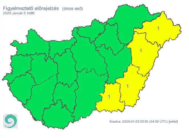 Hétfőn napközben a keleti, délkeleti megyékben a havazás mellett vegyes halmazállapotú csapadék is valószínű (eső, havas eső, ónos eső is hullhat) - folytatják a figyelmeztetést. Jelentős bizonytalanság mellett, késő délutántól kisebb körzetekben akár tartós ónos esőre (> 1 mm) is van esély.