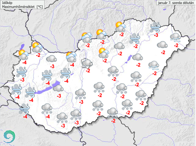 A legmagasabb nappali hőmérséklet -5 és -1 fok között várható. Késő estére -7, -2 fokig hűl le a levegő.