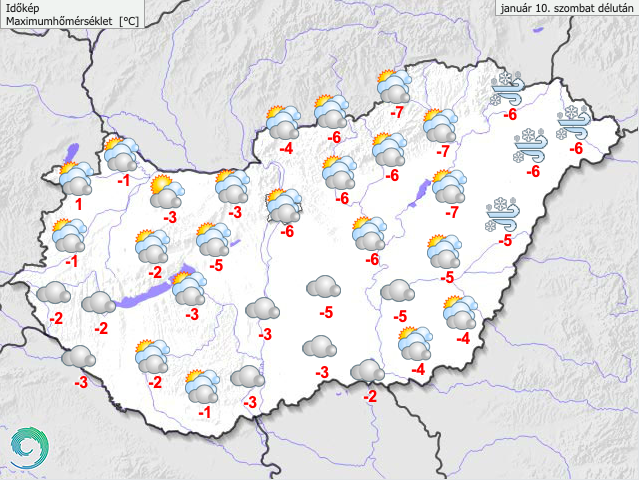 A legmagasabb nappali hőmérséklet -8 és +1 fok között alakul - a nyugati, északnyugati tájakon mérhetünk fagyponthoz közeli, míg kelet, északkelet felé haladva egyre alacsonyabb értékeket. Késő este többnyire -12 és -2 fok közötti értékekre van kilátás.