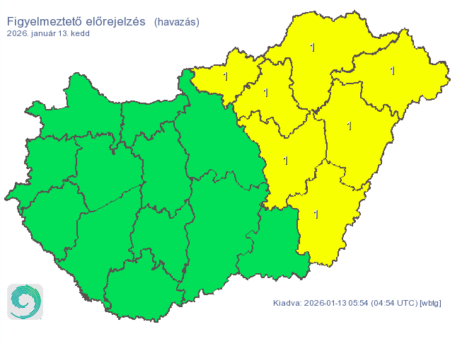 A reggeli órákig a Dunántúl északkeleti területein további lepel-2 cm hó hullhat, miközben a Dél-Dunántúlon az ónos eső gyengül, megszűnik - kezdi veszélyjelzésében a meteorológiai szolgálat.