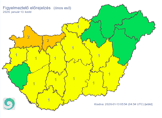 Két vármegyére narancs riasztást is kiadtak: