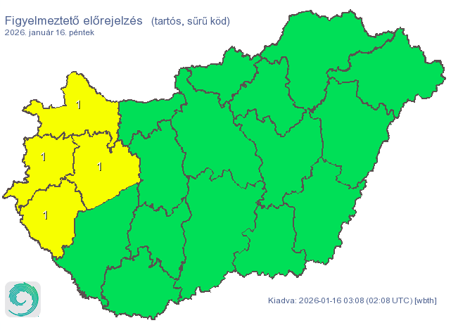 A sűrű köd miatt 4 vármegyére adtak ki figyelmeztetést:
