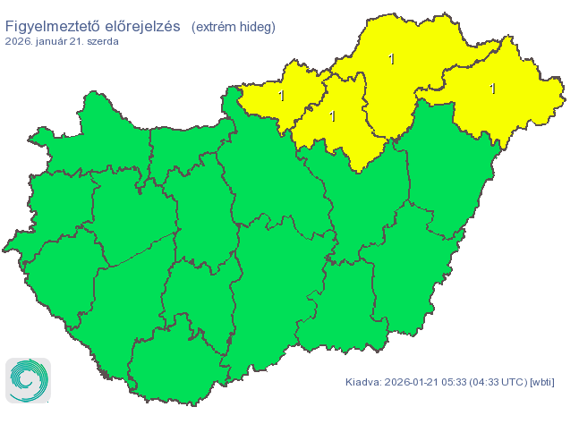 4 vármegyére adtak ki riasztást az extrém hideg miatt: