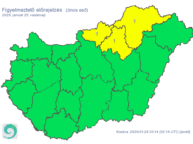 Három vármegyére van elsőfokú figyelmeztetés érvényben: