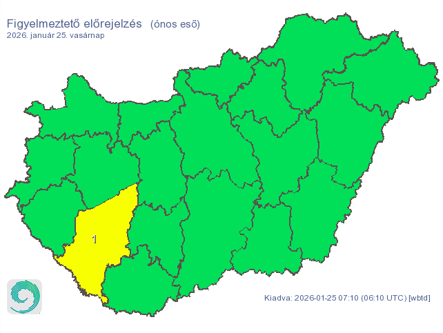 Ma reggel délnyugaton előfordulhat átmeneti, kis mennyiségű (néhány tized mm) ónos eső - írja a HungaroMet a friss veszélyjelzésében.
