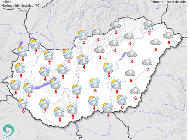 A HungaroMet előrejelzése szerint a déli, délkeleti szelet napközben már több helyen élénk, főleg a déli vidékeken és az Észak-Dunántúlon helyenként erős lökések is kísérhetik. "A legmagasabb nappali hőmérséklet 2 és 9 fok között várható. Késő estére többnyire 0 és +5 fok közé hűl le a levegő" - írják.