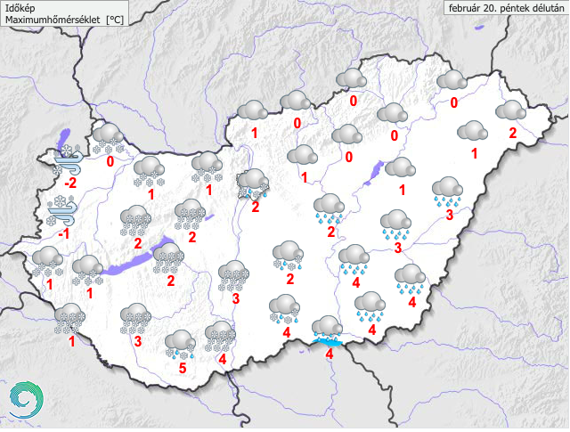 A legmagasabb nappali hőmérséklet -2 és +7 fok között alakul, északnyugaton és északkeleten lesz hidegebb. Ez döntően a reggeli, délelőtti órákban állhat be, napközben általában csökkenni fog a hőmérséklet. Késő estére -5 és +4 fok közé hűl le a levegő.