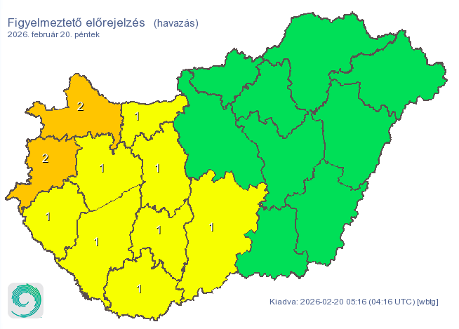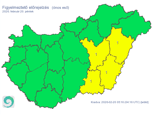 Az esti órákban a fagyos levegő beáramlásával a Tiszántúl nyugati felén és a Tisza mentén átmenetileg ónos eső és fagyott eső is kialakulhat. A várható mennyiség általában 1 milliméter alatt marad, de helyenként ennél valamivel több is hullhat.