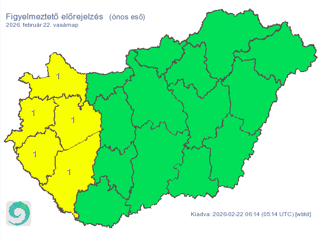 "Ma a reggeli órákban a nyugati tájakon átmeneti jelleggel gyenge ónos esőre lehet számítani (néhány tized mm, esetleg kis körzetekben ~1 mm közelében)" - olvasható a HungaroMet friss előrejelzésében.