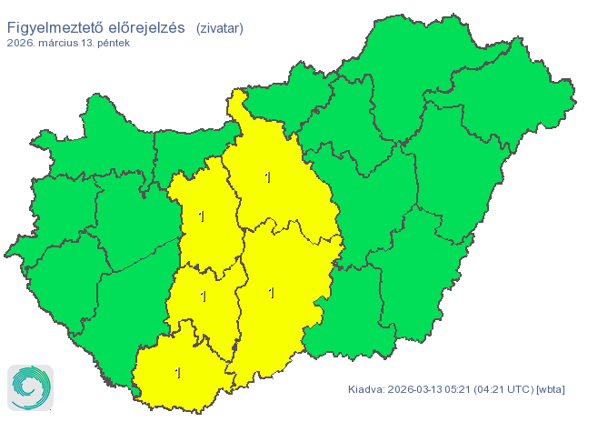 "Pénteken néhol fordulhatnak elő zivatarok - főként a Dunántúl keleti felén, illetve kisebb eséllyel a középső megyékben. Környezetükben szélerősödés és apró szemű jég előfordulhat" - írja a Hungaromet.